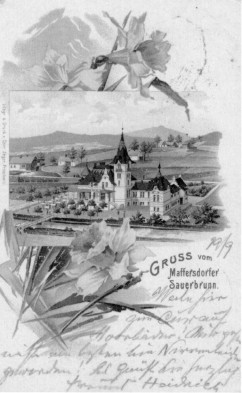 Sommerfrische und Kurort immer mehr an Bedeutung. Der "Sauerbrunn" ist fünf Minuten von der Bahnstation "Maffersdorf-Sauerbrunn"